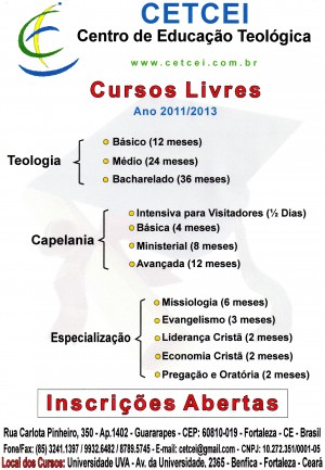 Desta forma, o CETCEI veio suprir esta lacuna com o oferecimento de Cursos Livres relativos a essa área, fazendo-o de modo interdenominacional, eliminando, portanto, as barreiras das denominações existentes no seio das Igrejas Cristãs, prevalecendo, assim, o cumprimento do IDE de Jesus em sua plenitude, consubstanciado no Evangelho ( Mc 16:15).